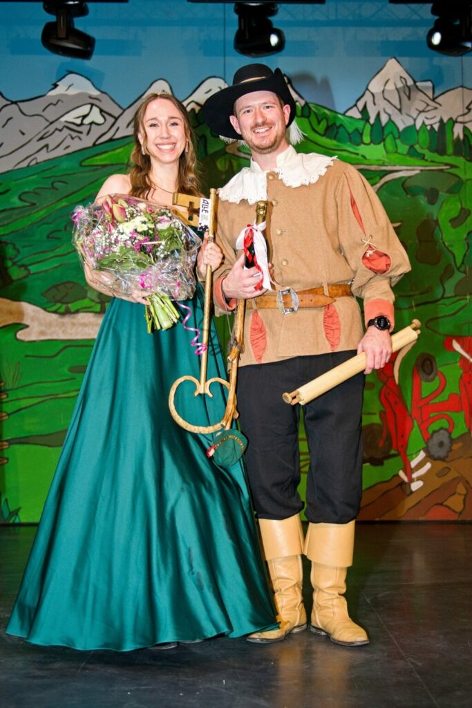 Das Prinzenpaar Sophia I. und Mexx I. (Bild) jubilierten mit den Worten: „Wir zwei übernehmen das Zepter heut und führen Euch durch die Fasnetszeit. So lieber Schultes, gib den Schlüssel her und mach uns Platz. Du kannst jetzt gern zu den Hühnern nach Mooshausa gehen, mir machet uns so lang hier in Aitrach bequem.“
