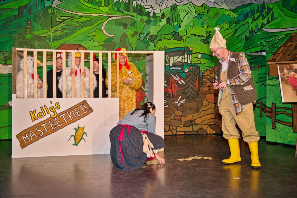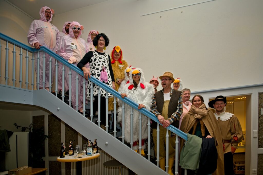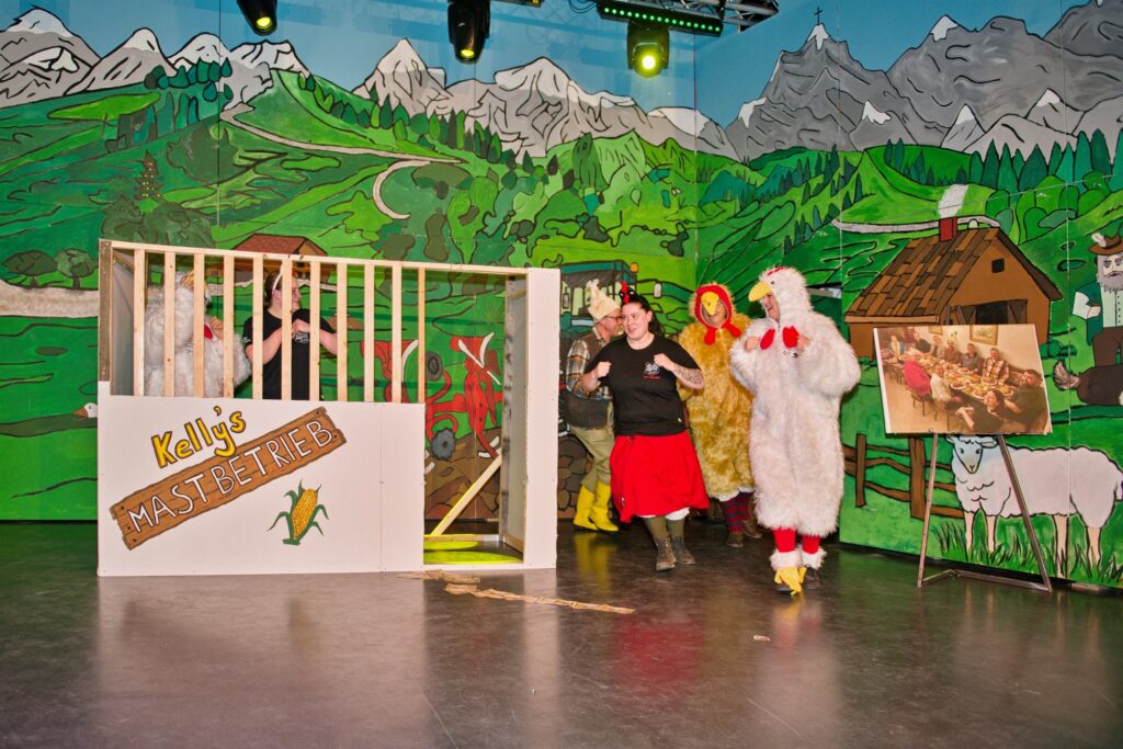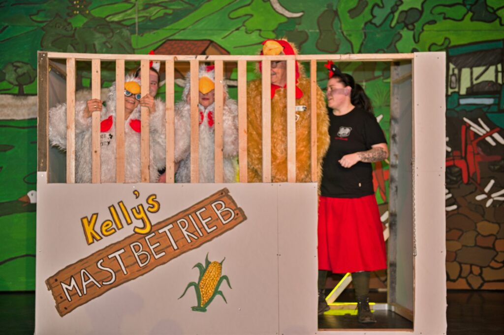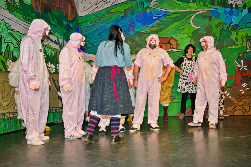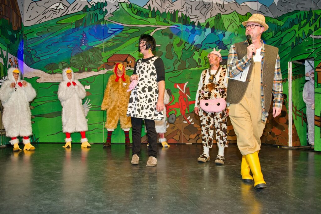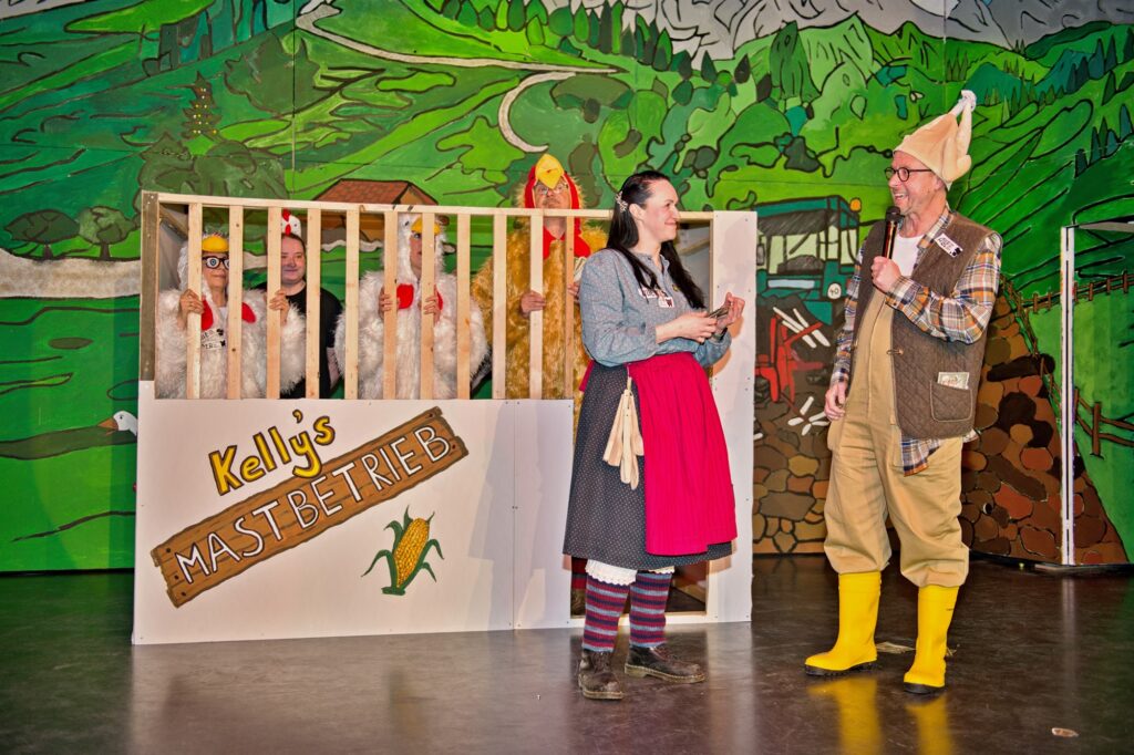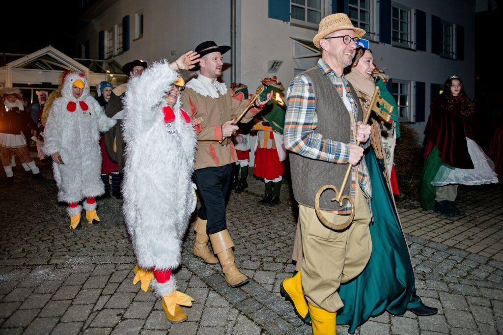 Aitrach – Abschied von den Amtsstuben: Bürgermeister Thomas Kellenberger und sein Gemeinderat sind entmachtet. Kelly schafft nun in der Landwirtschaft. Und beaufsichtigt seine Räte als Hühner und Schweine. Nun sind die Narren in Aitrach an der Macht. Die zahlreichen Zuschauer vor dem Rathaus mussten nicht lange warten, bis sich der als Bauer verkleidete Rathauschef der Öffentlichkeit zeigte.