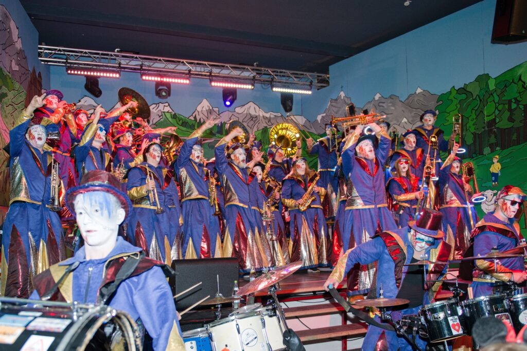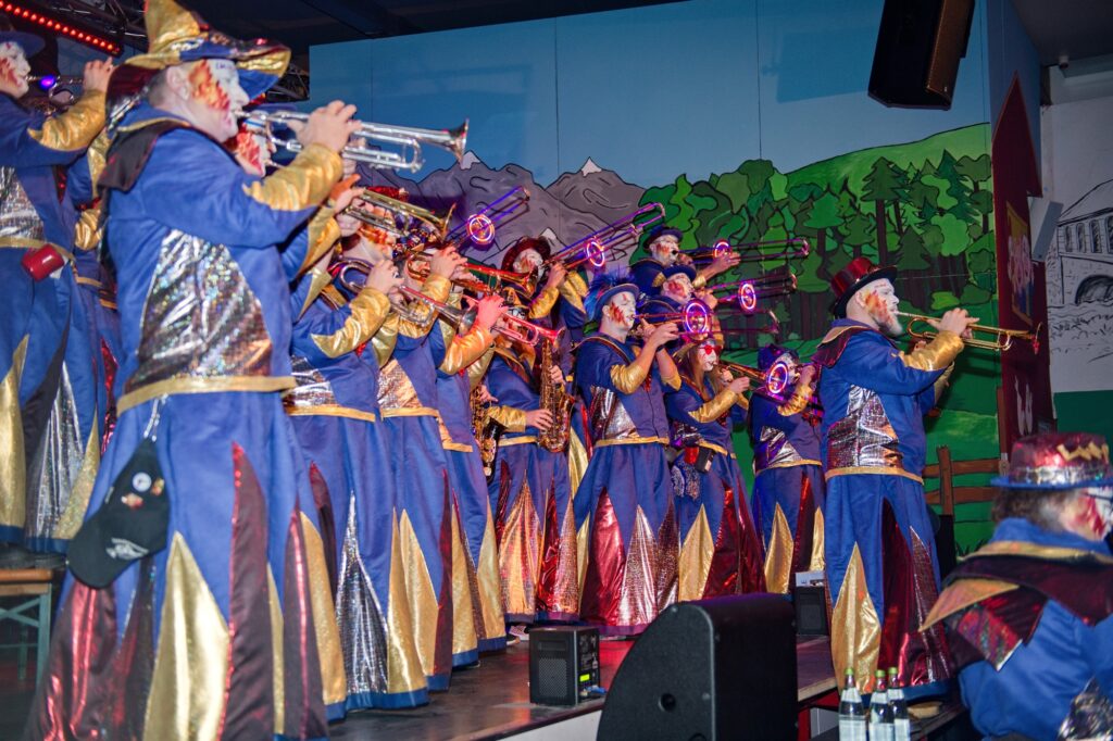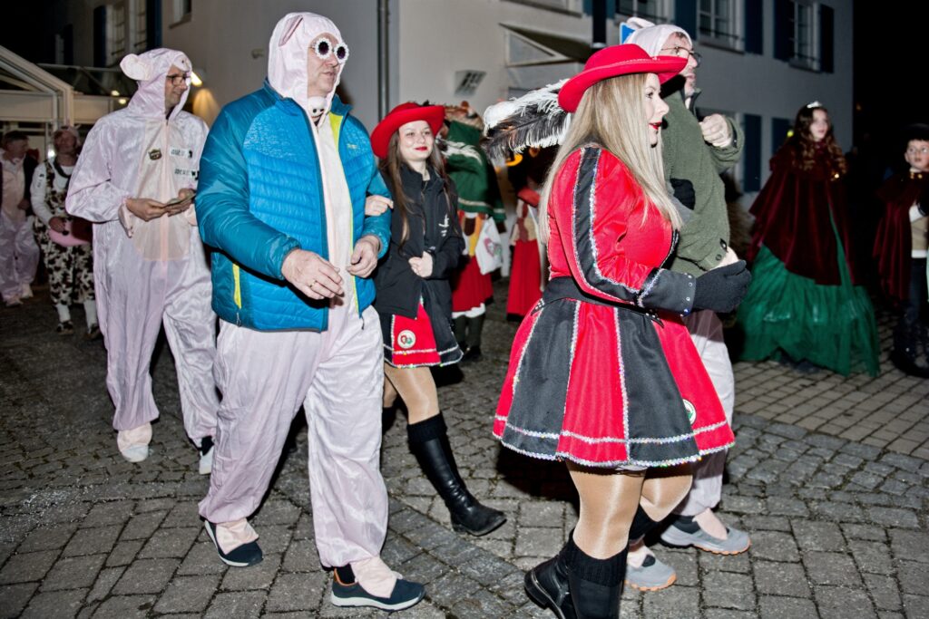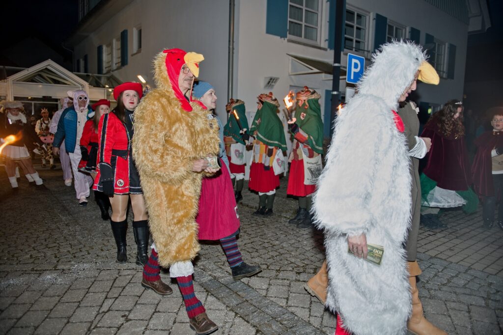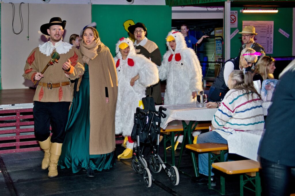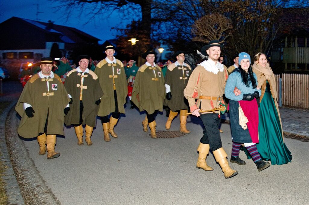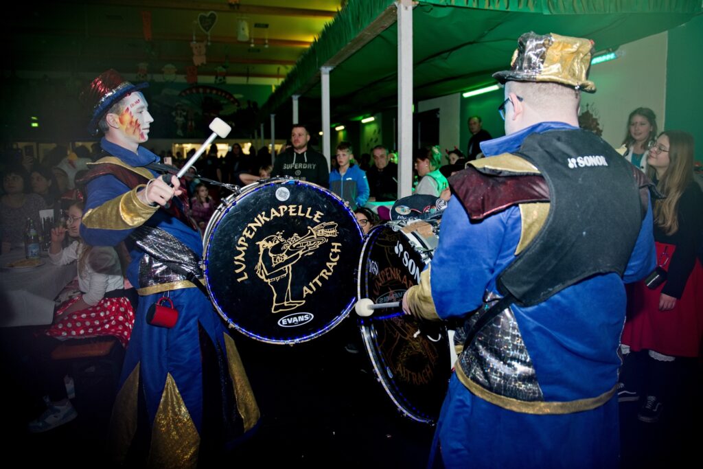 Die heimische Lumpenkapelle blies und trommelte zum Angriff und zur Machtübernahme, danach zog ein langer Fackelzug zur Festhalle in die „Tierhalle“, getreu dem Motto der diesjährigen Aitracher Fasnet „Auf dem Bauernhof“. Von der Aitracher Lumpenkapelle wurde den Besucher gleich richtig in der wunderschön dekorierten Festhalle eingeheizt.