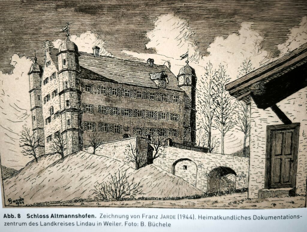 Die Herrschaft Altmannshofen stand einst im Besitz der Herren von Altmannshofen. Diese sind seit 1201 bezeugt. Die Herrschaft wurde 1478/1539 von den Herren von Landau erworben. Im Jahr 1601 kam die Herrschaft an die Freiherren von Muggental, die sie 1662 an die Truchsessen von Waldburg verkauften. Im Rahmen der Mediatisierung im Jahr 1806 kam die Herrschaft Altmannshofen unter die Landeshoheit des Königs von Württemberg. Das Schloss wurde in der ersten Hälfte des 17. Jahrhunderts erbaut. Aus der Internet-Enzyklopädie „wikipedia“.
