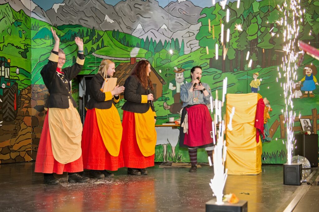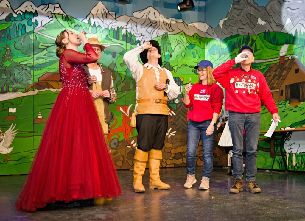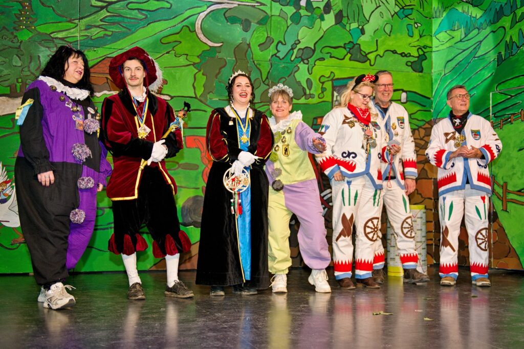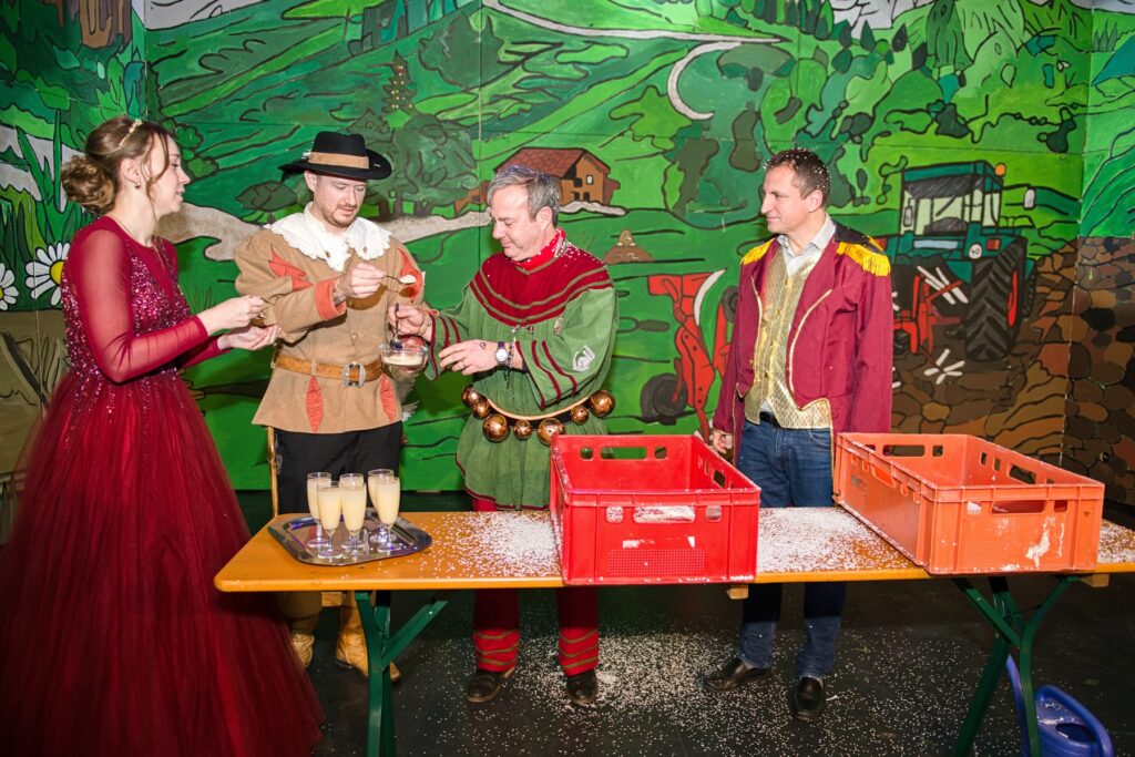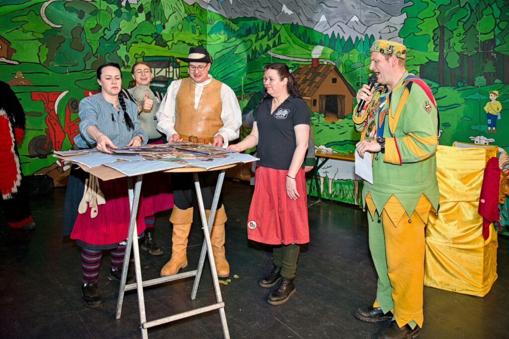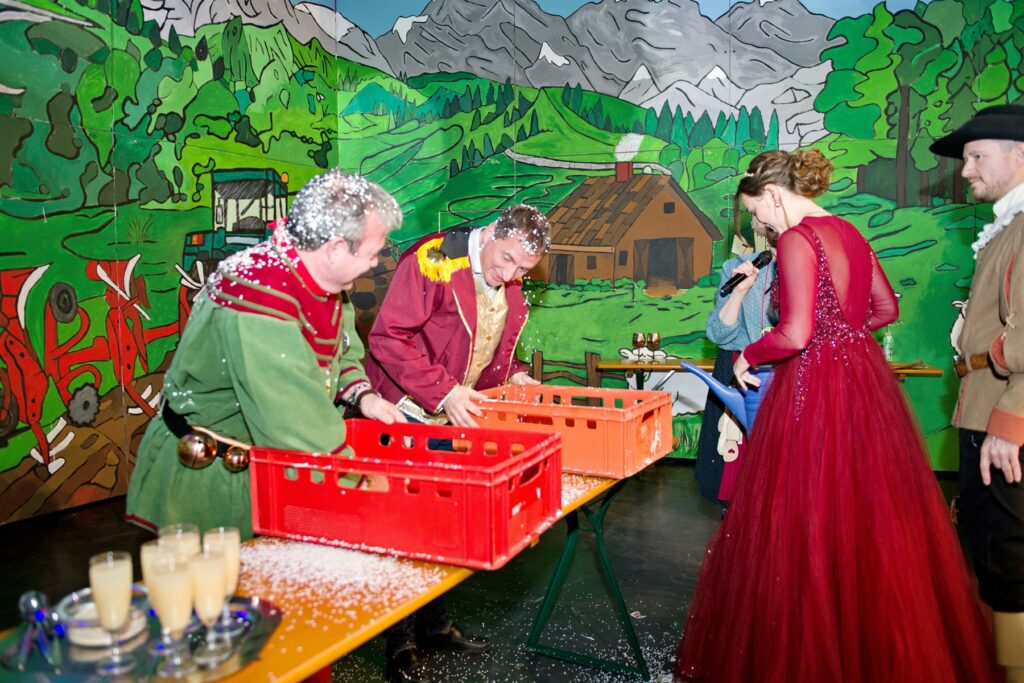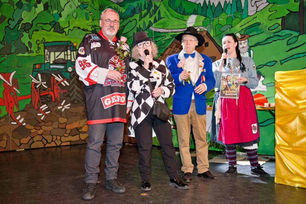 Mit dem Aichstetter Zunftmeister Bernhard Ranz ging es wieder zur Tagesordnung über, dieser überreichte den anwesenden Frauen jeweils eine Rose, wie es zum Valentinstag üblich ist. Sein Aichstetter Gefolge forderte Susa und Co. zum Puzzle auf, fast wäre es auf Anhieb gelungen.