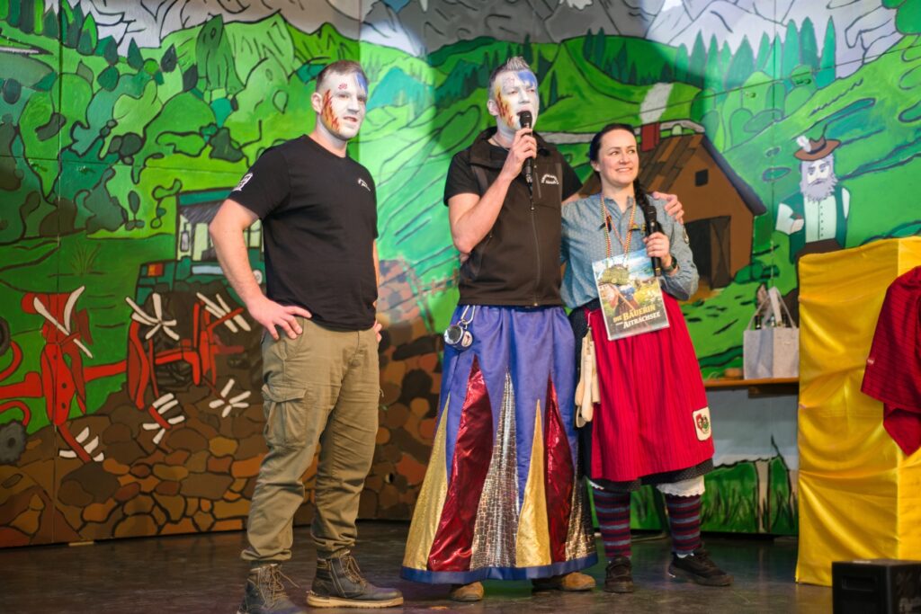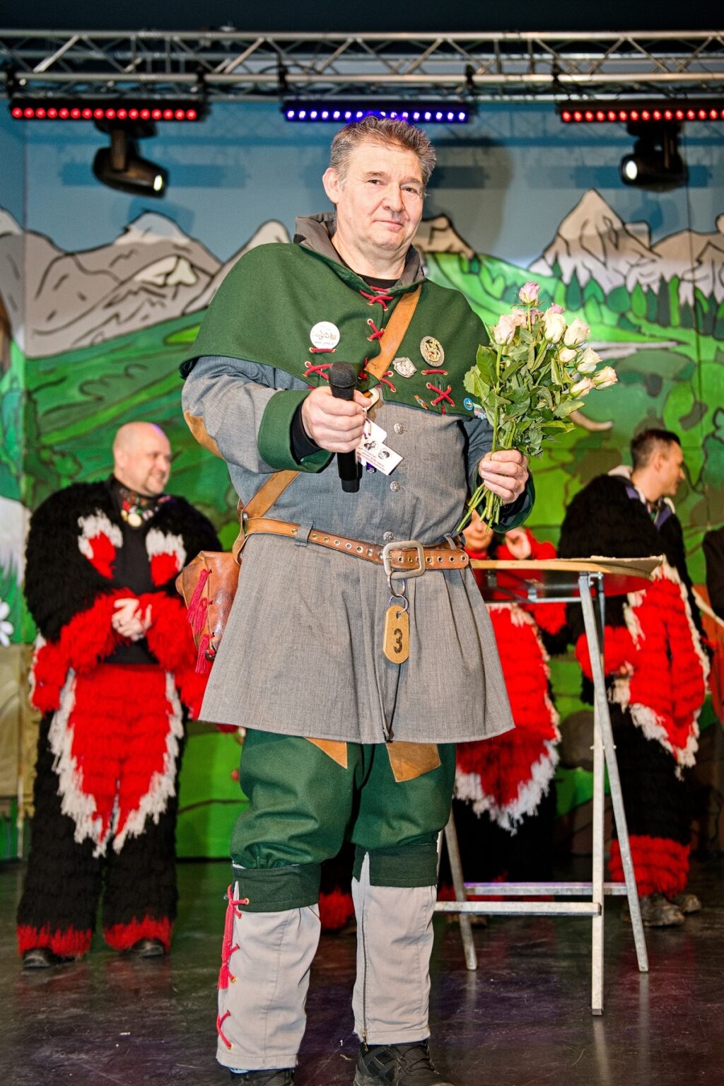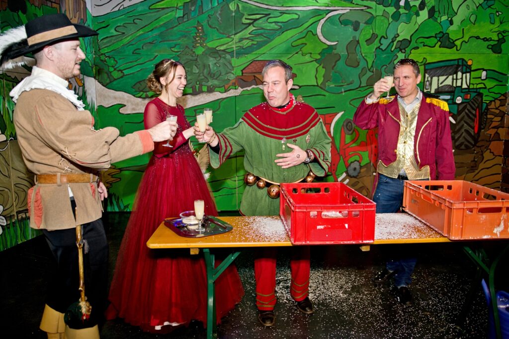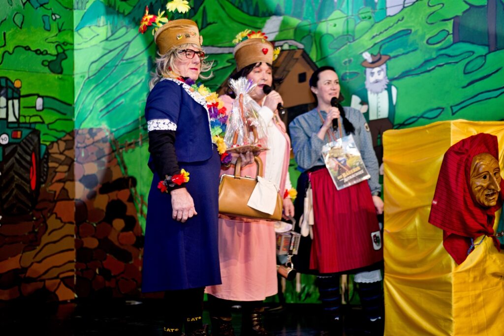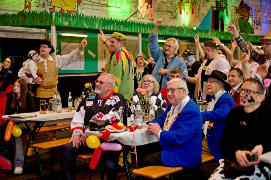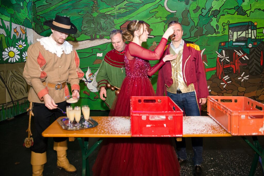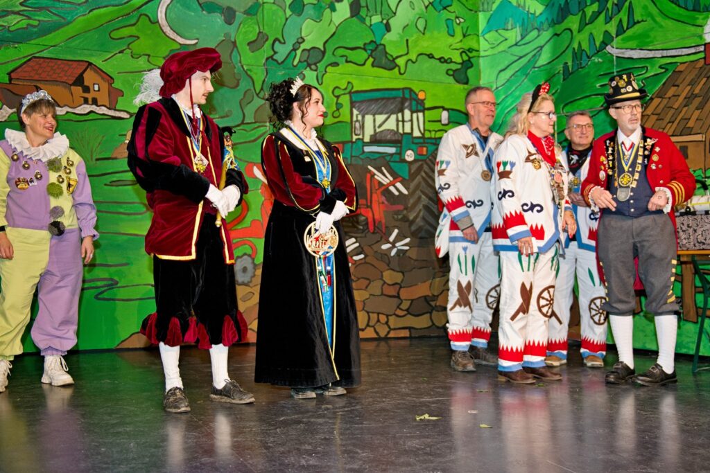 Mit dem Aichstetter Zunftmeister Bernhard Ranz ging es wieder zur Tagesordnung über, dieser überreichte den anwesenden Frauen jeweils eine Rose, wie es zum Valentinstag üblich ist. Sein Aichstetter Gefolge forderte Susa und Co. zum Puzzle auf, fast wäre es auf Anhieb gelungen.