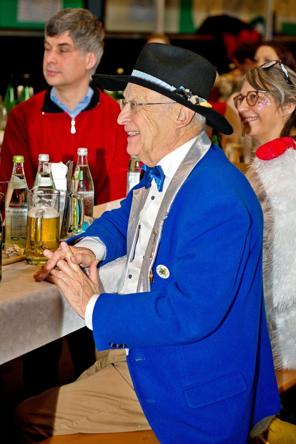 Die benachbarte NZ Leutkirch war mit Thomas Blum und Gefolge stark vertreten, Bürgermeister Kelly bekam den passenden Hühnerhut aufgesetzt.