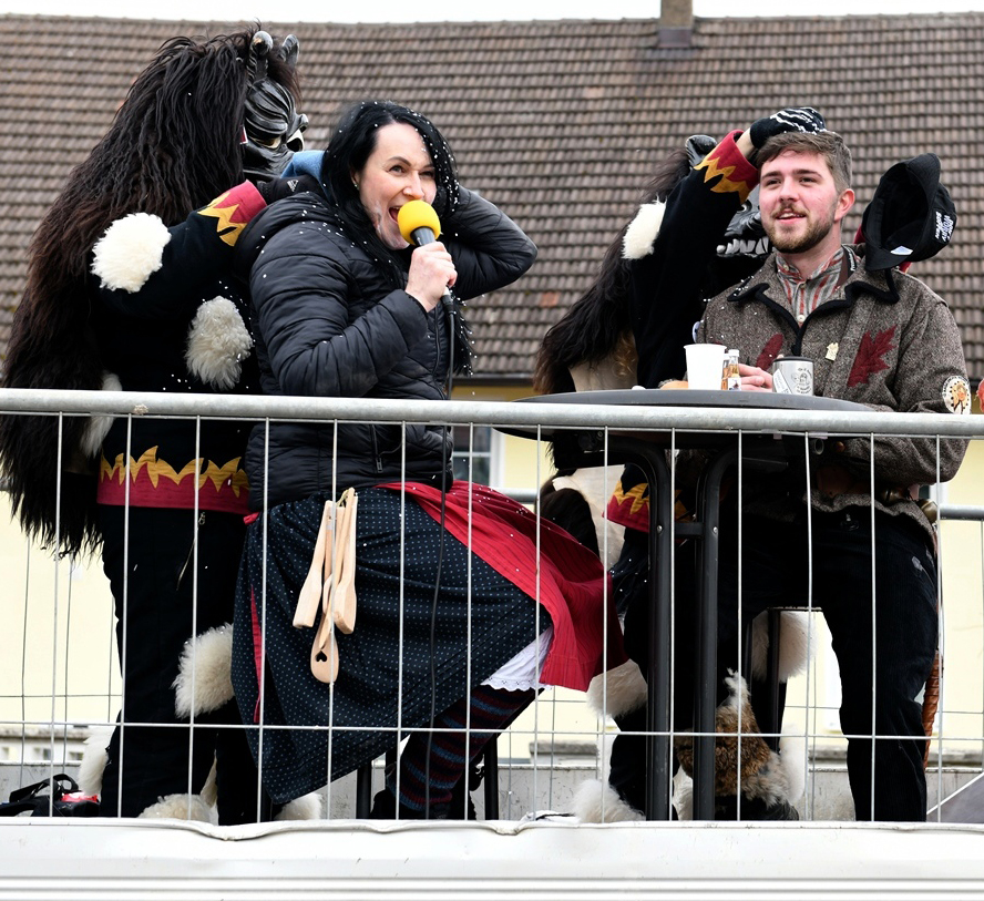 Hexenpyramiden und sonstige spektakuläre Vorführung wurden mit viel Applaus bedacht. An den jeweiligen Kommentatoren-Plätzen sorgten für zusätzliche Stimmung: am „Gasthaus Rössle“ Martin Speckle; beim Maler Merk Susa Lautenbacher mit dem Tannheimer Zunftmeister Markus Arnold; bei der Ehrentribüne am alten Rathaus Michael Weinmann, besser bekannt als der „Moser“.