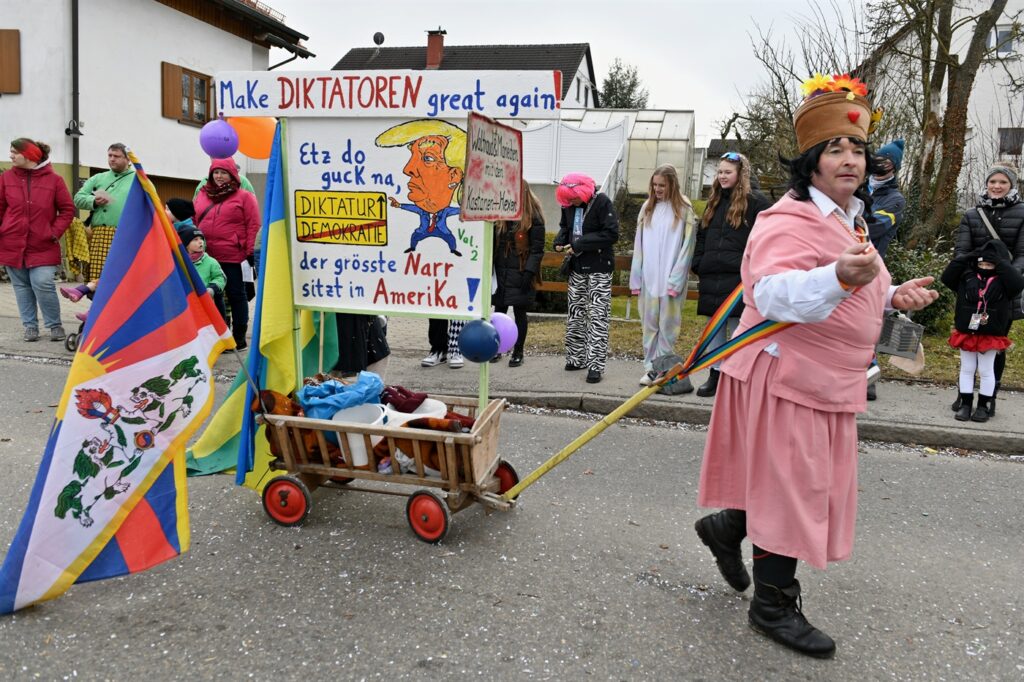 Höhepunkte und absolute Hingucker beim Aitracher Gaudiwurm waren die heimischen Fußgruppen und Wagenbauer, welche die Zirkuswelt, aber auch aktuelle politische Themen der Gegenwart in Stadt und Land bunt und fantasievoll präsentieren. Die Musikkapelle der Teilgemeinde Treherz führte den Zug an, gefolgt von den Aitracher Narrenzunftgruppen Roi- und Kellaweible, den Prinzenpaaren Florentine und Andreas und Laura und Jakob sowie den Gardemädchen.