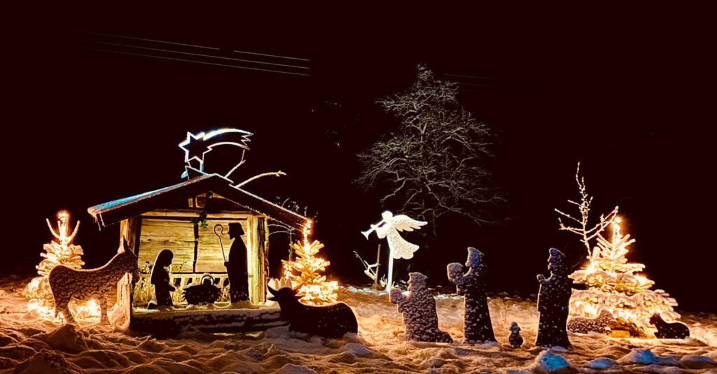 Die Falkenstein-Krippe in Schlegelsberg bei Nacht. Foto: Andrea Haller