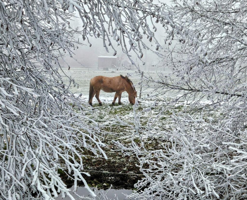 Karl Weber joggt eifrig in der Gegend um Gaisbeuren. Am 29. Dezember hat er bei Obermöllenbronn kurz angehalten, um dieses Pferd zu fotografieren.