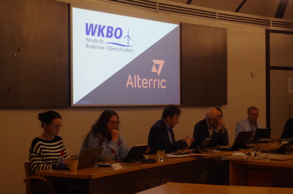Helmut Hertle, Geschäftsführer der Windkraft Bodensee-Oberschwaben (WKBO), und Falk Burkhardt vom Kooperationspartner Alterric hatten im November 2023 die Genehmigung für vier Windkraftanlagen Enercon Typ E2 mit einer Nabenhöhe von 166 Metern und einem Rotordurchmesser von 160 Metern erhalten. Da die Firma Enercon den Anlagentyp mit einem Selbstkletterkran aus Stahl, wobei auf die Rodung der Fläche für den Kranausleger verzichtet werden kann, nicht mehr liefert, bedarf es einer Änderungsgenehmigung. Die Standorte der vier Anlagen, die Anlagenhöhe und Leistung und damit auch die Schall- und Schattenemission bleiben gleich. Entsprechend dem Kranausleger benötigt die Anlage zusätzliche Rodungsflächen, etwa 0,4 Hektar pro Anlage mehr. Die Rodungsarbeiten haben schon begonnen und eine Nachrodung soll im Winter 2024/2025 erfolgen, so dass die Anlage 2025 in Betrieb gehen könnte. Erst dann könnten Zahlen und Konditionen für eine Bürgerbeteiligung genannt werden, so Hertle.