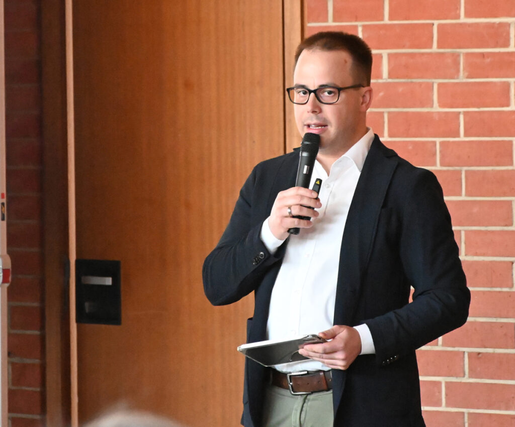 In gewohnt sachlicher, unaufgeregter Art stellte Christian Fitz (Bild) die Ziele der Bürgerrunde vor. Die Bürgerrunde möchte sich „faktenbasiert, sachlich und unabhängig“ mit der Windkraftplanung im Haistergau auseinandersetzen. Dazu fordert sie Transparenz und Offenheit in allen Planungsschritten und stellt den Schutz der Menschen und der Heimat in den Vordergrund. Das Ziel ist, es den betroffenen Bürgern zu ermöglichen, sich eine qualifizierte Meinung zu den Windkraftanlagen zu machen, deren Wirtschaftlichkeit und sinnvollen Beitrag zur Energiewende Fitz bezweifelt. Leider war das Mikro nicht gut eingestellt, so dass Fitz in den hinteren Reihen nicht gut zu verstehen war.