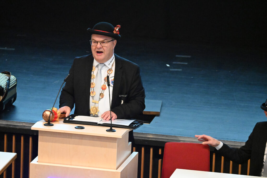 Zunftmeister Roland Haag gab letztmals einen Rechenschaftsbericht ab. Bekanntermaßen gibt er sein Amt nach der Fasnet 2024 ab. Im März wird der Nachfolger gewählt. Haag konnte auf ein ereignisreiches und freudvolles Jahr zurückblicken, in dem das Brauchtum mit viel Einsatz gepflegt wurde. Foto: Erwin Linder