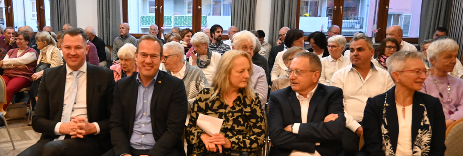 Gäste in der ersten Reihe (von rechts): Frau Manz, Thomas Manz, Brigitte Göppel, Raimund Haser MdL, OB Matthias Henne