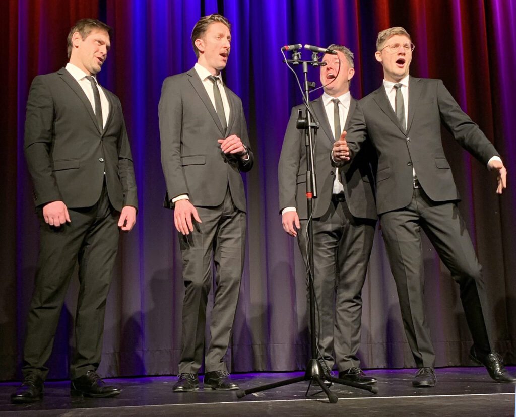 Bad Waldsee – Schwarzer Anzug, weißes Hemd, schwarze Krawatte, schwarze Lackschuhe und brav-hübsch frisiert wie frisch vom Coiffeur, so betreten traditionell „Barbershop-Quartets“ die Bühnen der Szene weltweit. Für „Kultur am See“, die „Kleine Reihe“ des Spektrums K konnten die schwedischen „Ringmasters“ ins Haus am Stadtsee verpflichtet werden. Unser Reporter Peter Lutz hat das Konzert am 28. März besucht: