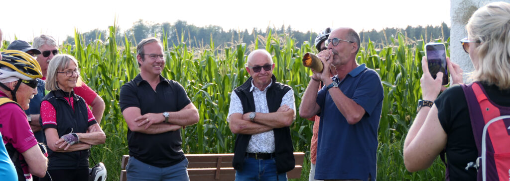 Neben der wunderbaren Landschaft, den beeindruckenden Kapellen, die von den ehrenamtlichen Mesnerinnen und Mesnern mit großem Engagement betreut werden, wie Rosa Eisele an jeder Station betonte, gab es auch regionalpolitische Themen, die besprochen und diskutiert wurden. So verwies die Haisterkircher Ortsvorsteherin auf die Entwicklungen der letzten Jahre, die unter anderem an den Neubauten oder dem erst kürzlich eröffneten und gut frequentierten Radweg Osterhofen – Eggmannsried sichtbar und im besten Sinne des Wortes er-fahr-bar wurden. Zudem wurden die Planungen im Zusammenhang mit Windkraftanlagen in der Region oder auch Entwicklungen in Bad Wurzach zum Bau eines Aussichtsturms im Wurzacher Ried diskutiert.