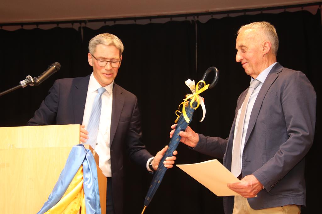Der Landratsstellvertreter überreichte neben Orden und Urkunde auch einen Regenschirm.