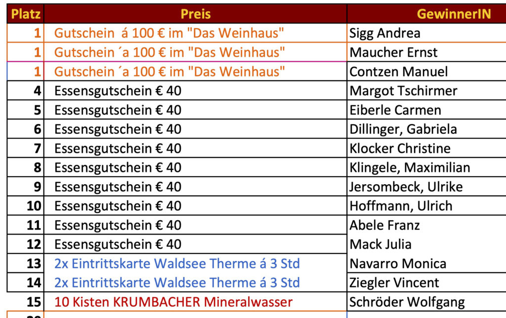 Und hier die glücklichen Gewinner der 40. Spezialitätenwochen: