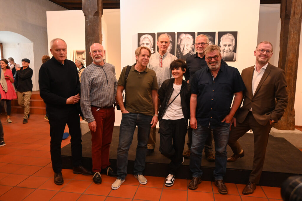 Gruppenbild mit Dame: Acht der zehn ausstellenden Fotografen waren bei der Eröffnung anwesend (von links): Roland Rasemann, Ferdinand Josten, Wynrich Zlomke, Steffen Dietze, Alexandra Pflug, Ernst Fesseler, Markus Leser, Veith Hämmerle.