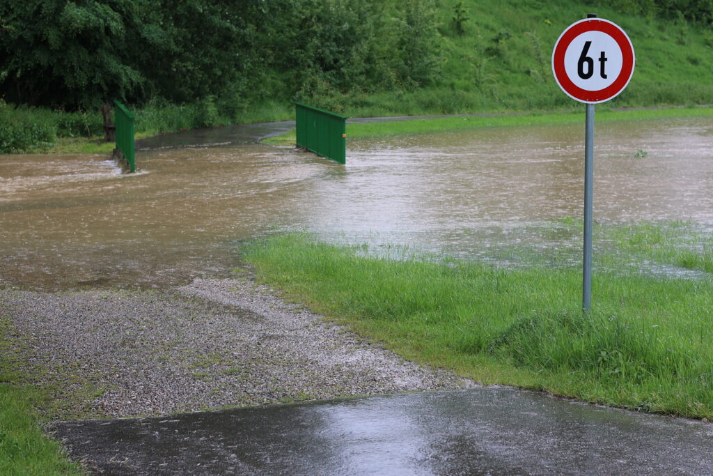 Vom Ellbach überflutete Brücke.
