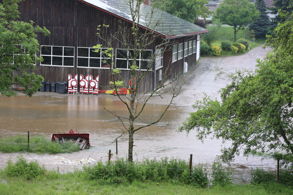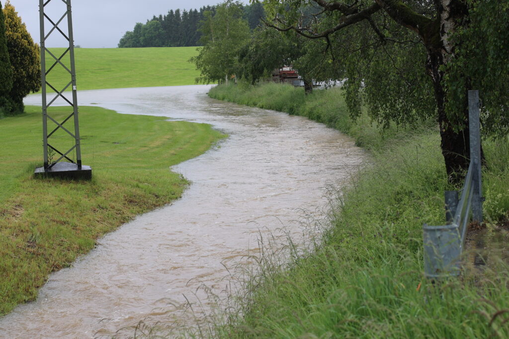 Hauerz – Der Starkregen am heutigen Freitag (31. Mai) hat die Pegel stark anschwellen lassen. Da und dort im Bereich des Verbreitungsgebietes der Bildschirmzeitung traten die Bäche über die Ufer. Unser Reporter Hans Reichert hat im Bereich Hauerz fotografiert (zwischen 17.00 Uhr und 18.00 Uhr). Hier sein Bericht: