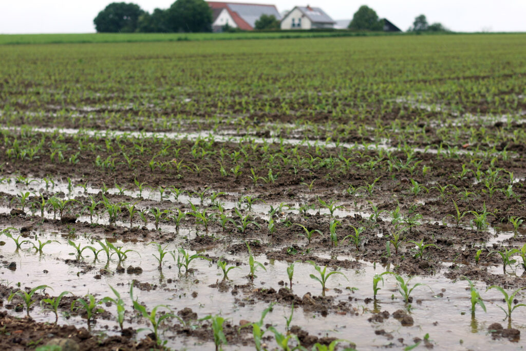 Maispflänzchen im Wasser.