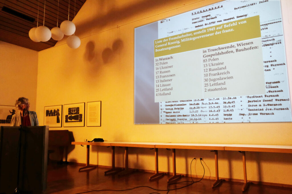 Bei der Begrüßung zeigten sich Stadtpfarrer Stefan Maier und die Historikerin und pensionierte Lehrerin Gisela Rothenhäusler, die sich seit Jahrzehnten intensiv mit der Heimatgeschichte und insbesondere mit der NS-Zeit von Wurzach beschäftigt, vom Besuch überwältigt: „Ich wäre mit 20 Besuchern schon hoch zufrieden gewesen”, sagte die Referentin. Am Ende waren es rund 60 und es mussten rasch noch weitere Stühle herbeigeschafft werden.