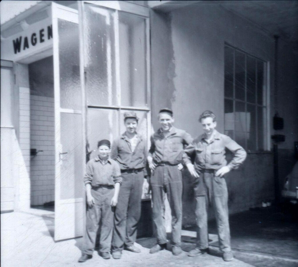 Die Mechaniker von Alex Müller: Gerhard Müller, Erich Matt, Martin Schwarz und Rolf Müller um 1960