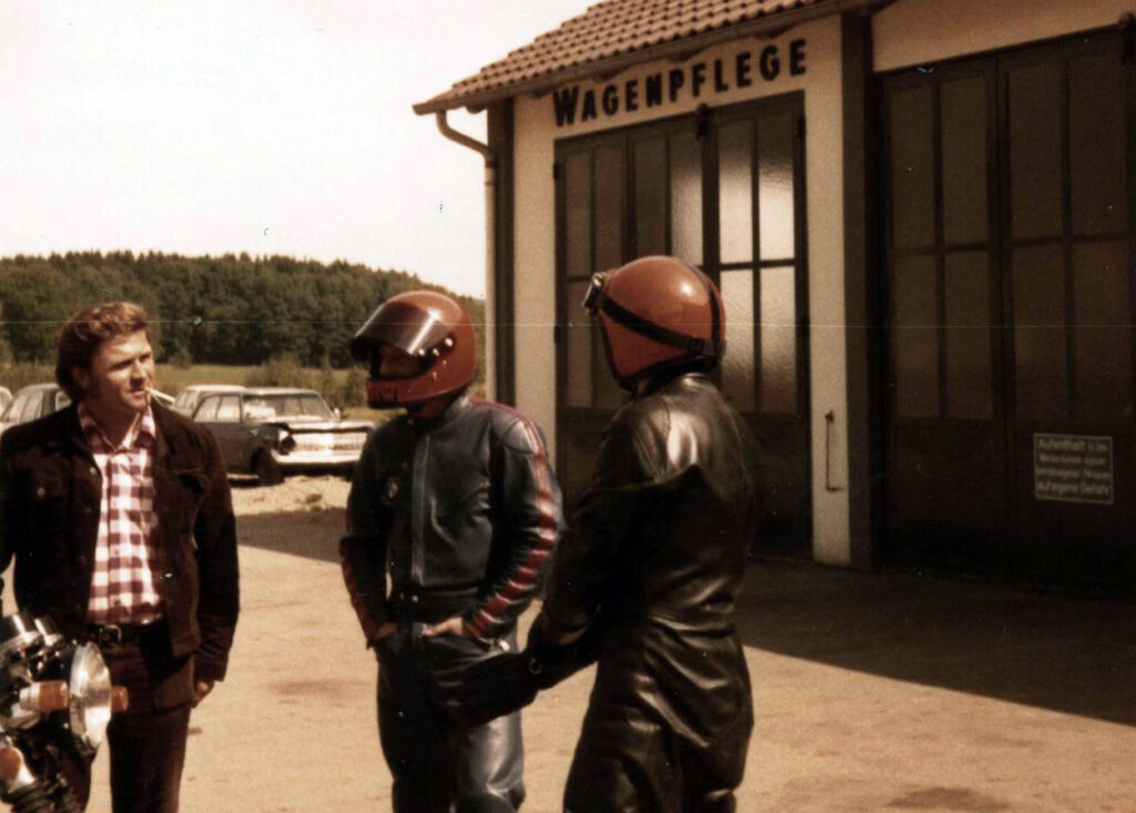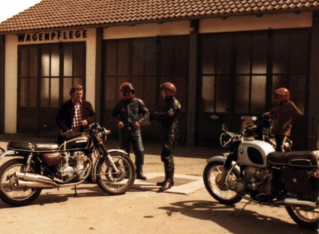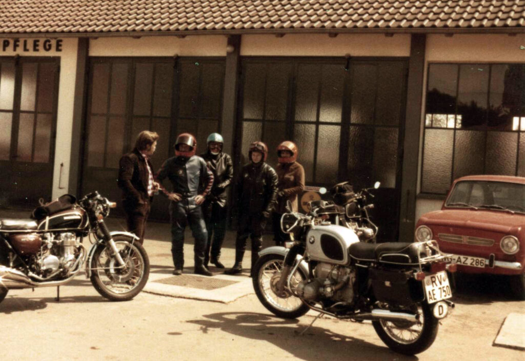 Motorrad-Herrlichkeit in den 1970ern. An der Werkstatt in der Immenrieder Straße.