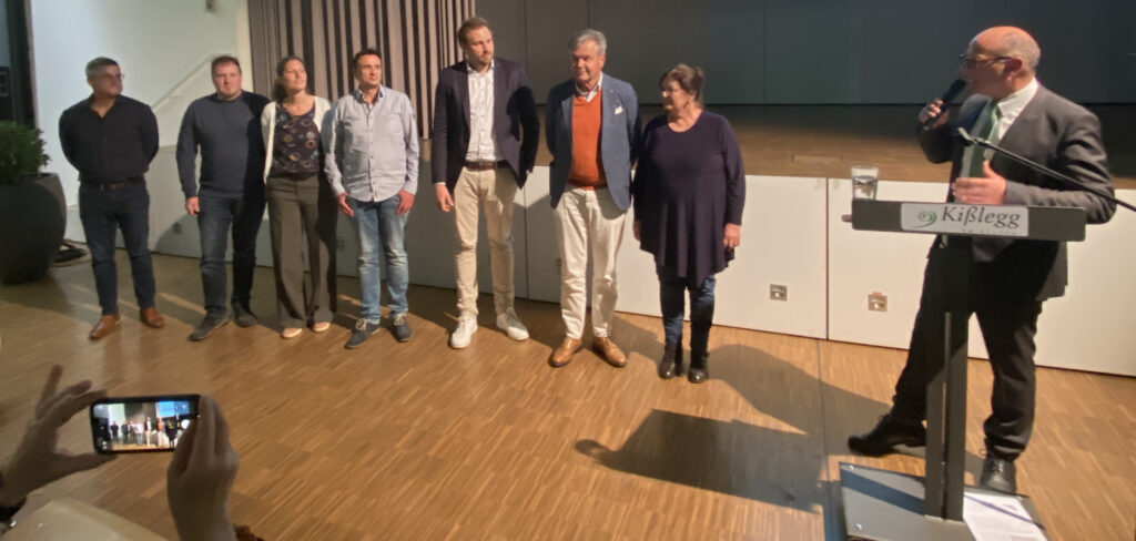 Kißlegg (rei) – Im Rahmen des Bürgerabends am 24. April wurden langjährige Kißlegger Kommunalpolitiker geehrt. Für sage und schreibe 40 Jahre Mitgliedschaft im Kißlegger Gemeinderat überreichte Bürgermeister Dieter Krattenmacher dem verdienstvollen Kommunalpolitiker Detlef Radke ein Geschenk und dankte ihm für all die ehrenamtliche Arbeit, die er für die Gemeinde geleistet hat. Weiter wurden geehrt: