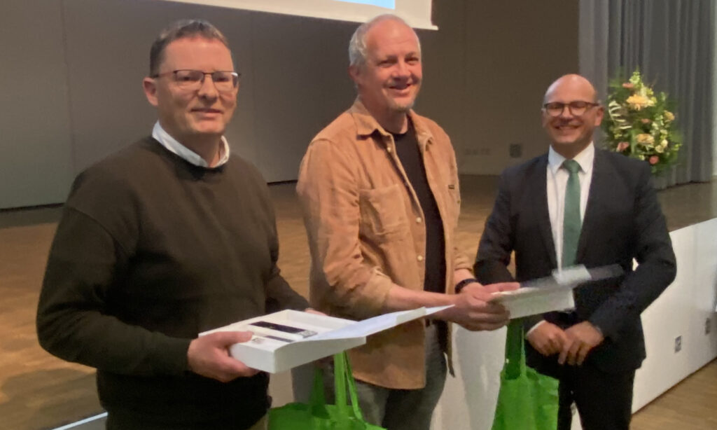 Dr. Andreas Kolb und Petra Evers mit Bürgermeister Krattenmacher. Foto: Julian Aicher