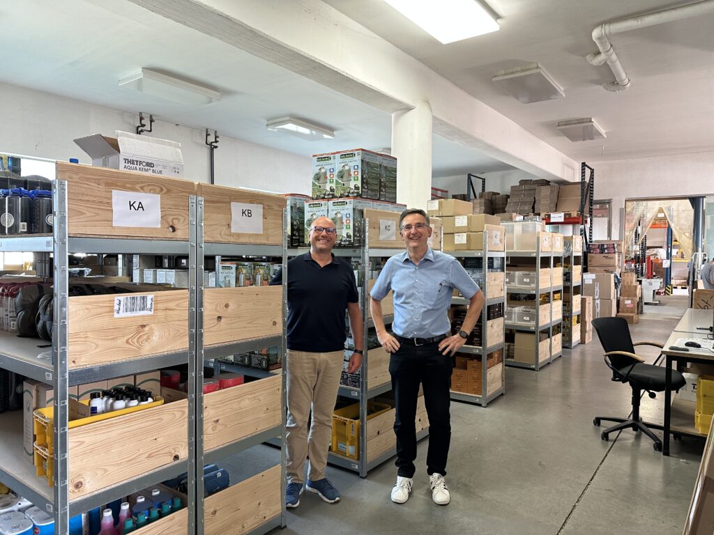 Kißleggs Bürgermeister Dieter Krattenmacher bei einem Betriebsbesuch (mit Geschäftsführer Kurt Schauer)