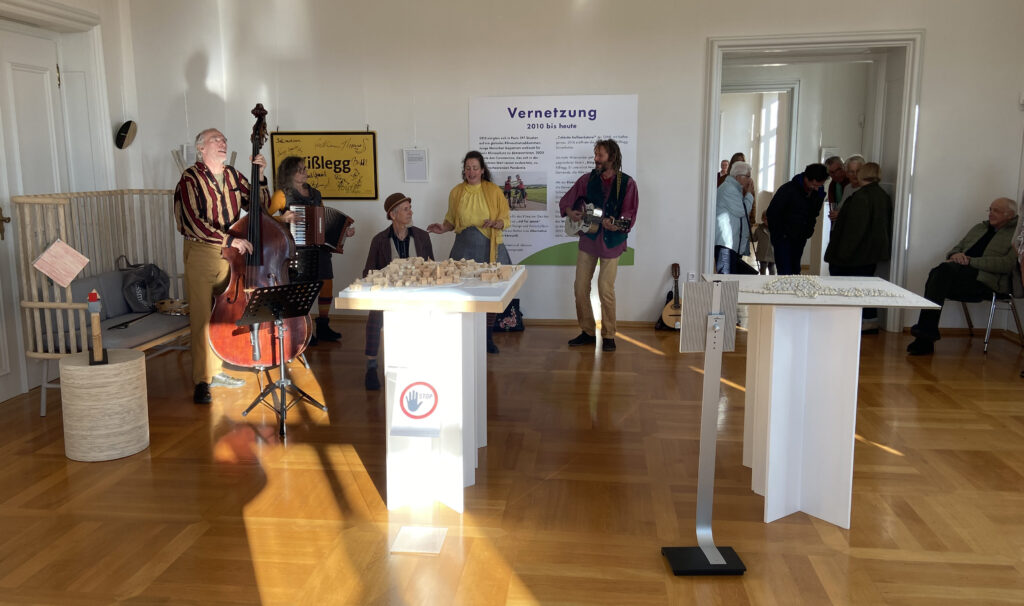 Kißlegg – Sonntagnachmittag, 27. Oktober ab 14.00 Uhr im Neuen Schloss Kißlegg. Finissage – also letzter Tag – der Ausstellung „ZeitRäume”. Bürgermeister Dieter Krattenmacher hat sie fünfmal besucht. All die Ereignisse während und um die 1200-Jahr-Feiern in der Mehr-Seen-Gemeinde hinterließen bei ihrem Rathauschef den Eindruck, „dass wir in einer Gemeinschaft leben, die – wenn’s drauf ankommt – funktioniert.”