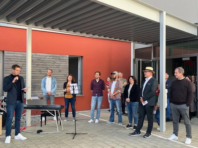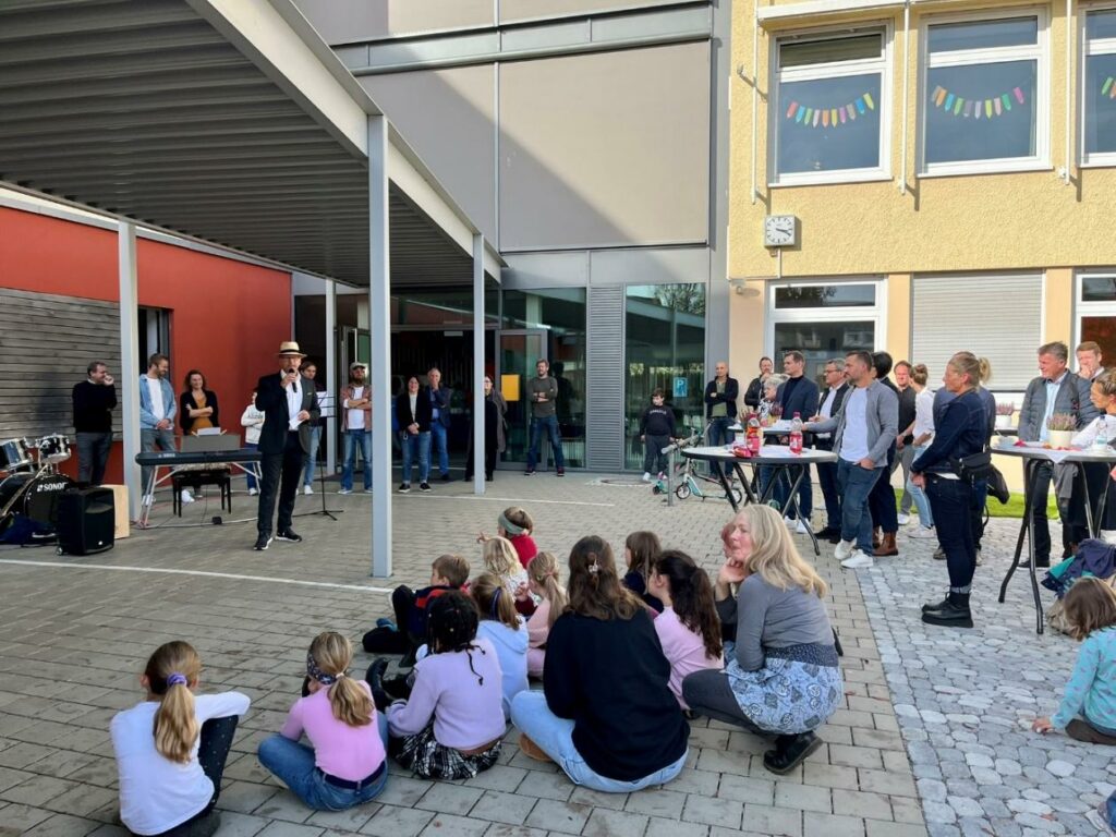 Die Feier wurde durch den Schulchor der Klasse 4 musikalisch eröffnet. Markus Mendler, Rektor der Grundschule, begrüßte alle Anwesenden, dankte der Gemeinde für die gelungenen Baumaßnahmen und übergab anschließend das Wort an den Vorsitzenden des Fördervereins Christoph Dürr. Christoph Dürr war dabei überzeugt, dass das Geld hier gut angelegt worden sei.