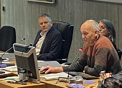 Michael Krumböck (Bild; links OB Henle) erläuterte dem Gemeinderat, er werde bei der Sitzung “bloß ein paar so Lupen” auf seinen Bericht lenken. Zum Beispiel die Stromversorgung. Dabei geht der Umweltbeauftragte davon aus, dass pro Jahr auf dem Gebiet der Großen Kreisstadt Leutkirch rund 250 Millionen elektrische Kilowattstunden verbraucht werden. Davon rund 180 Millionen über das allgemein öffentliche Stromnetz – der Rest als Eigenverbrauch direkt am Haus oder im Betrieb. Von den genutzten Kilowattstunden entstehen 80 Millionen auf Markung der Großen Kreisstadt selbst aus erneuerbaren Energiequellen. Vor allem dank Sonnenstrom-Photovoltaik. Dabei machte Krumböck auf eine Entwicklung aufmerksam. Bewirkten Erneuerbare Energien in Leutkirch während des Jahres 2000 etwa 1 Million elektrische Kilowattstunden, so waren es 2022 insgesamt 80 Millionen Kilowattstunden. Also achtzig mal mehr.