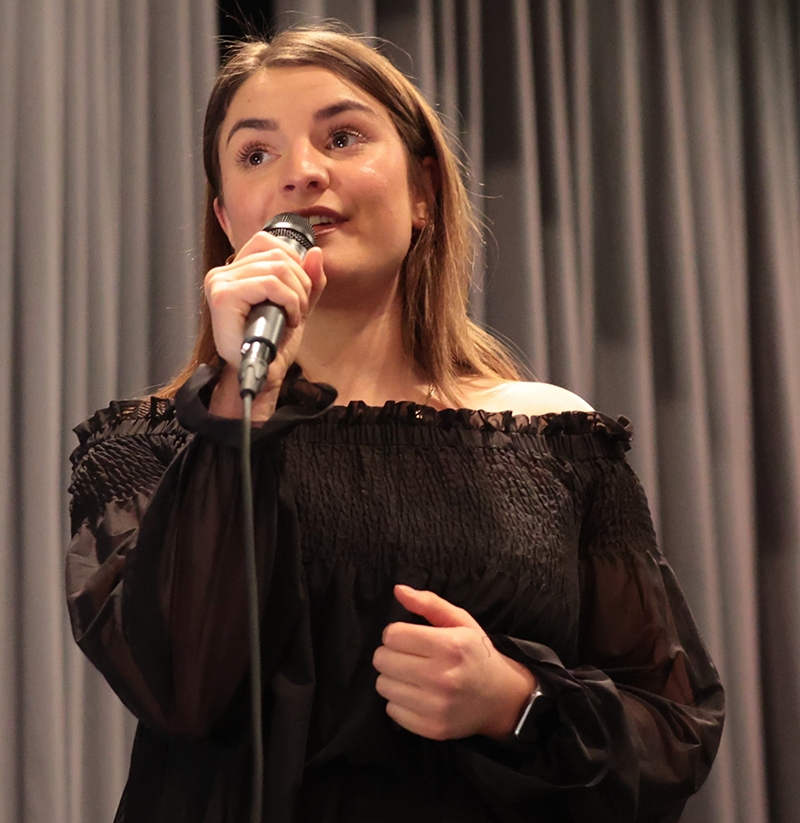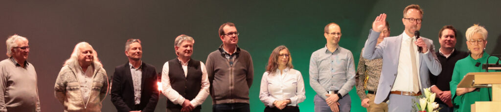 Beim Sprechen des Amtseids ist der Gemeinderat auf der Bühne.