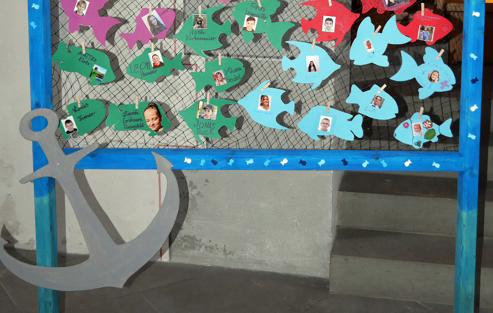 Hier der untere Teil des Fische-Ständers mit den übrigen Fotos der Erstkommunionkinder.