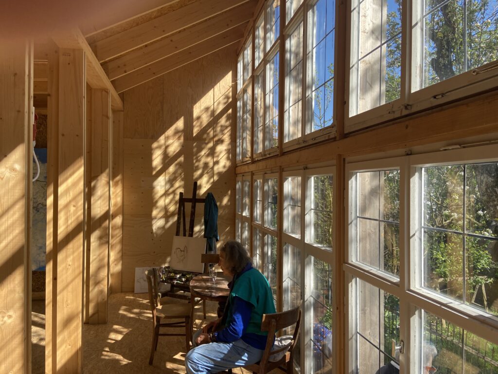 Ein Atelier, aus Holz und Stroh gebaut