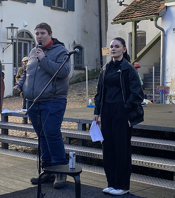Luis Kistler und Melissa Altergott vom Jugendgemeinderat Leutkirch am 27. Januar bei der “Demo gegen Rechts” in Leutkirch.