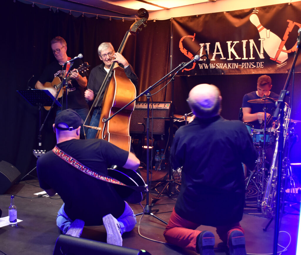 Drinnen drehte sich das Tanzbein derweil weiter. Die „Shaking’ Pins” brachten mit ihrem waschechten Rock’n’Roll nicht allein die Malztennen-Bühne zum Beben, sondern bewegten sich mit ihrem Sänger direkt ins Publikum. Das sorgte für heiße Stimmung – ergänzt durch allerhand kühle Getränke – direkt im gleichen Raum geboten.