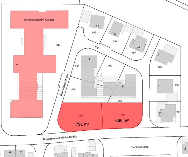 Die Gemeinde Kißlegg verkauft die Grundstücke Flst.-Nr. 960 und 961 im Baugebiet „Becherhalde II“ für eine Mischnutzung aus Wohnen und Gewerbe.