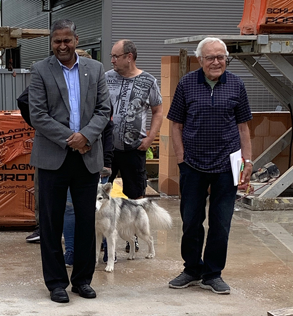 Gleich danach begab man sich ins Feuerwehrhaus zum geselligen Teil der Grundsteinlegung. Bei Häppchen und Getränken, serviert vom Ortschaftsrat, unterhielt man sich, hochzufrieden über den Beginn des Projekts, und tauschte sich natürlich noch fachmännisch aus.