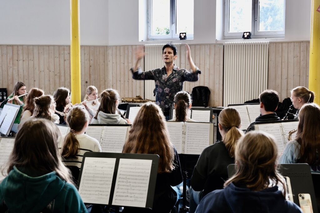 Im Zentrum der Arbeit mit Stefan Halder stand die Klangentfaltung des Orchesters. Gemeinsam mit dem Ensemble arbeitete er mit den einzelnen Registern an einem einheitlichen Klangbild und der richtigen Farbmischung. Dabei ging es nicht nur um die richtigen Töne, sondern vor allem um die Haltung: Mutiges Spielen und eine konstante innere Spannung waren die Schlagworte. Halder vermittelte eindrucksvoll, dass Musik erst dann entsteht, wenn alle Beteiligten gemeinsam Verantwortung für den Gesamtklang übernehmen.
