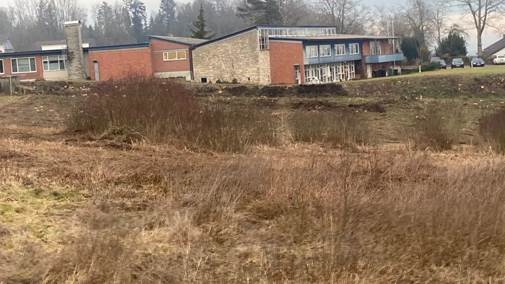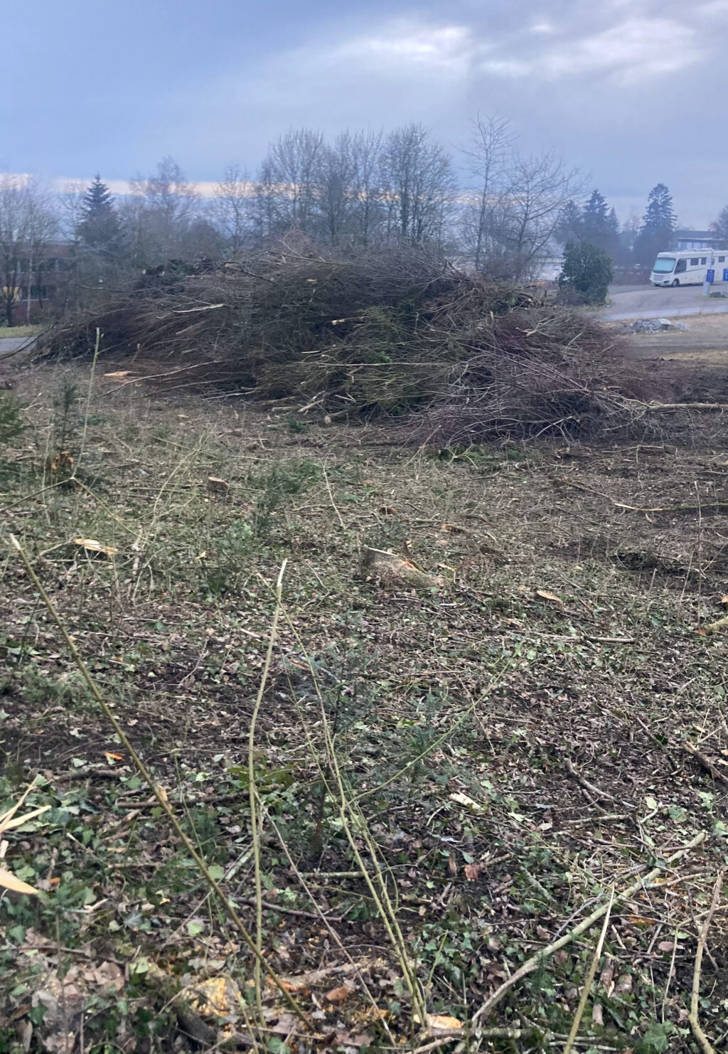 Zur Fläche 1: Im Auftrag der Stadt wurden ab der KW3 Sträucher und alle Bäume auf der ganzen Fläche abgeholzt
