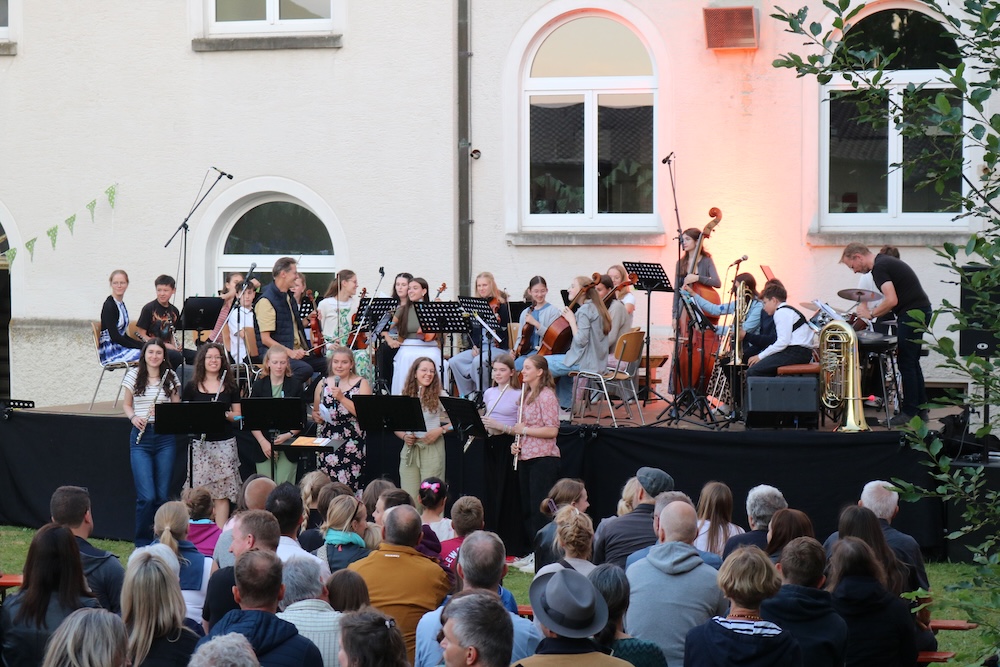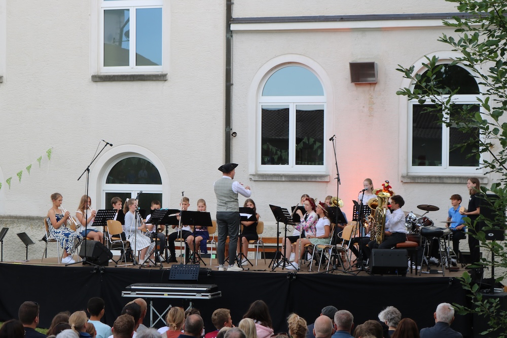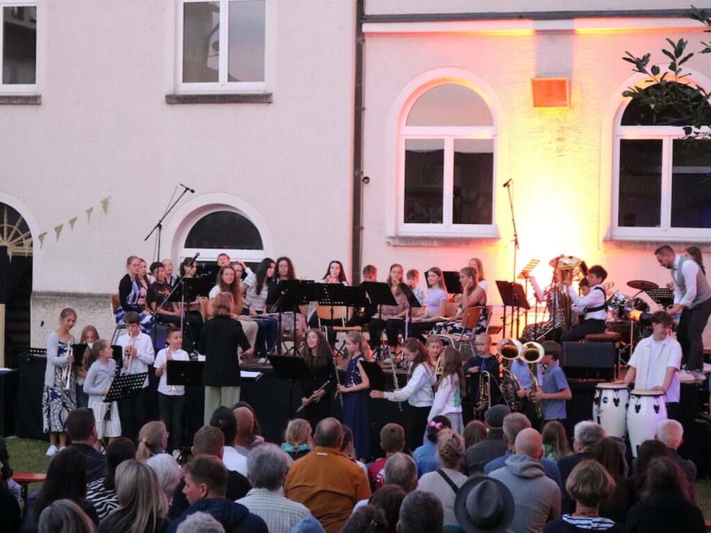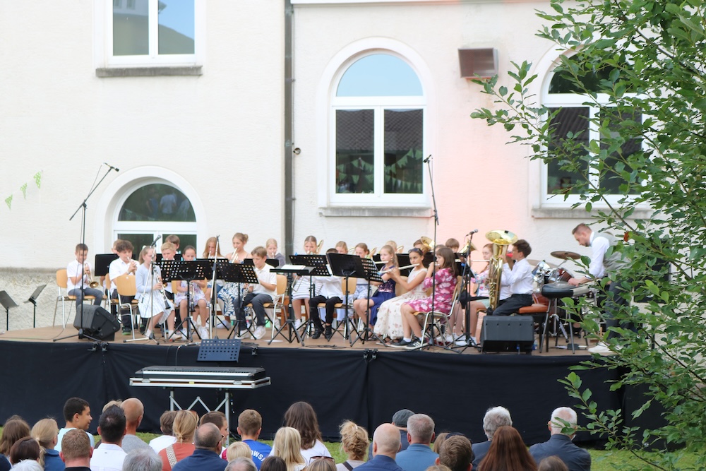 Blönried – Die Musik-Ensembles und Solisten des Studienkollegs St. Johann veranstalteten im malerischen Innenhof ein wunderbares Open-Air-Konzert. Herr Spindler, Herr Wenzel und Herr Hänsler hatten ein abwechslungsreiches Programm mit ihren jeweiligen Ensembles und teilweise auch ensembleübergreifend zusammengestellt, das von den ganz Kleinen bis zu den ganz Großen mit viel Freude und Können dargebracht wurde.