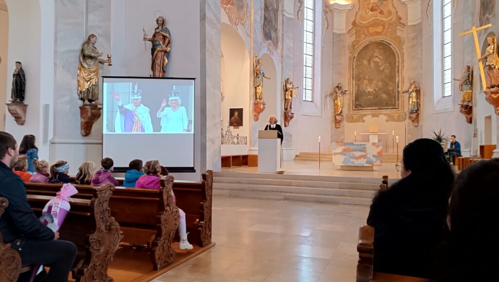 Pfarrerin Oehme nahm in ihrer kurzen Ansprache Bezug auf die Bibel mit der Stelle „Samuel salbt David zum König“; hierbei wird nicht der Größte und Stärkste zum König auserwählt, sondern der Kleinste, welcher sich sehr fürsorglich um die Schafe kümmerte. Da auch heute noch Könige mit heiligem Öl gesalbt werden, erhielten alle Kinder duftendes Öl auf die Hand mit den Worten: „Der Vater im Himmel segne dich und passe auf dich auf.“ Zum Abschluss lud Gemeindereferentin Bohnenberger ein, auch künftig am wöchentlichen Schülergottesdienst jeweils am Mittwoch, 7.30 Uhr, teilzunehmen.
