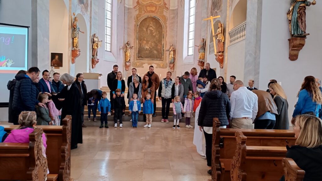 „Der Kindergarten ist vorüber, ab jetzt gehört ihr zu den Großen. Mit diesem Schritt entstehen neue Freundschaften und Bindungen, es beginnt für Euch ein weiterer Lebensabschnitt“, mit diesen Worten ermunterte Kathrin Bohnenberger die erwartungsfrohen Kinder. „Natürlich sind alle auch etwas aufgeregt und fragen, was diese neue Zeit wohl bringe, doch der liebe Gott kennt uns und geleitet uns auch durch das weitere Leben.“