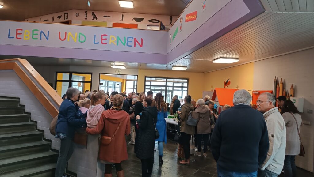 Während jetzt für die „Neuen“ die erste Schulstunde angesagt wurde, versammelten sich die vielen Gäste im Foyer der Schule. Hier gab es reichlich Getränke, diese besorgte der Elternbeirat unter Vorsitz von Antje Maucher. Leckere Laugenbrenzeln sponserte die Bäckerei Hepp, dafür gab es einen Sonderapplaus.
