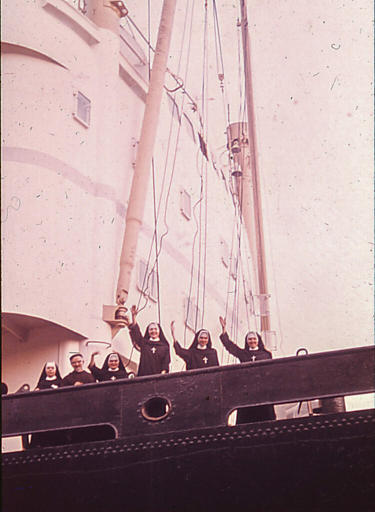 Der Aufbruch war ein Abenteuer; vom ländlichen Reute führte die Reise der ersten fünf Missionarinnen nach Amsterdam und von dort 4 Wochen lang auf dem Frachtschiff “Darmstadt” nach Indonesien. Die Überfahrt muss eindrucksvoll gewesen sein, zum heute 90-jährigen Kapitän, Klaus Grahl, gibt es noch immer Kontakt. Nach ihrer Ankunft vor Ort begannen Sr. M. Bentivolia Kärcher, Sr. M. Notburga Fürst, Sr. M. Franziska Förch, Sr. M. Erminolda Zoller und Sr. Thoma Albrecht mit den Vorbereitungen, bis die erste Gemeinschaft 1966 in Padangsidimpuan mit einem Kindergarten und einer Poliklinik starten konnte. Sechs Jahre später, 1972, wurde die Arbeit in Pangaribuan aufgenommen. Zwölf Jahre nach der Ankunft der Reuter Schwestern in Indonesien wurden die ersten einheimischen jungen Frauen als Kandidatinnen aufgenommen. 2024 zählt die Gemeinschaft 141 Schwestern und sie wächst weiter.