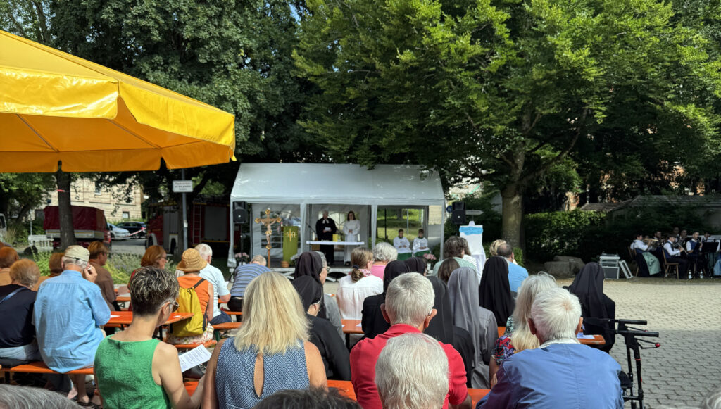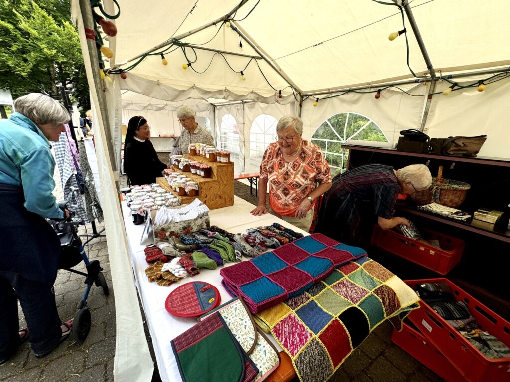 Für gastfreundliche, umfängliche Bewirtung sorgten der Förderverein des Liederkranzes Reute und die Freiwillige Feuerwehr. Beim Kirchenchor gab es am Sonntag Kaffee und leckeres, gespendetes Kuchengebäck. Im Zelt des Kirchenchors war auch ein Tisch mit Produkten des Strickkreises aufgebaut worden. Der Erlös dieser Verkaufsaktion (Handarbeiten, Geschenkutensilien, selbst gekochte Marmelade) ist bestimmt für die Missionsarbeit der Franziskanerinnen von Reute in Indonesien und Brasilien. Gut besucht war der Ökumenische Gottesdienst am Sonntagmorgen. Darüber veröffentlichte die Bildschirmzeitung einen Bericht von Ralf Schumann.