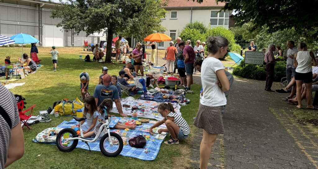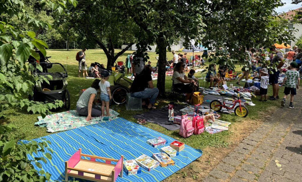Unter der Obhut der Solidarischen Gemeinde wurde ein großer Kinderflohmarkt organisiert und dazu Kinderschminken angeboten, das Zwergencafé wurde geöffnet, Boule-Spielen auf der neuen Anlage ermöglicht und die „Märchenzeit“ mit Dora Dipfele angeboten. Das alles dank des Engagements der Solidarischen Gemeinde.