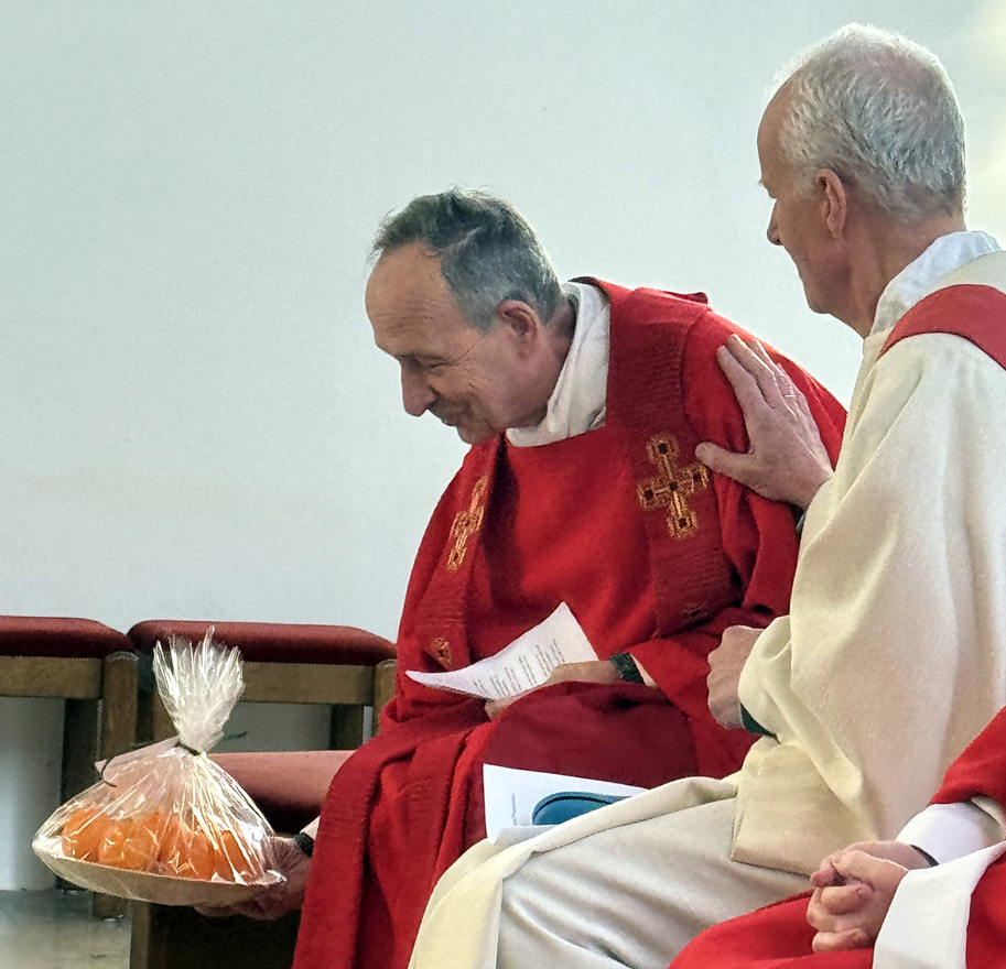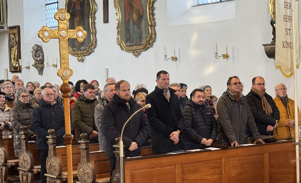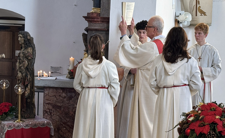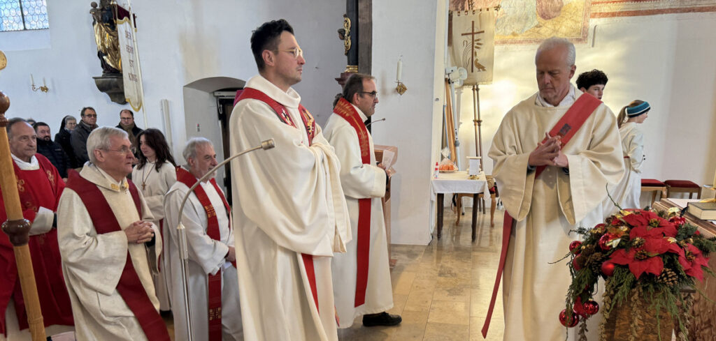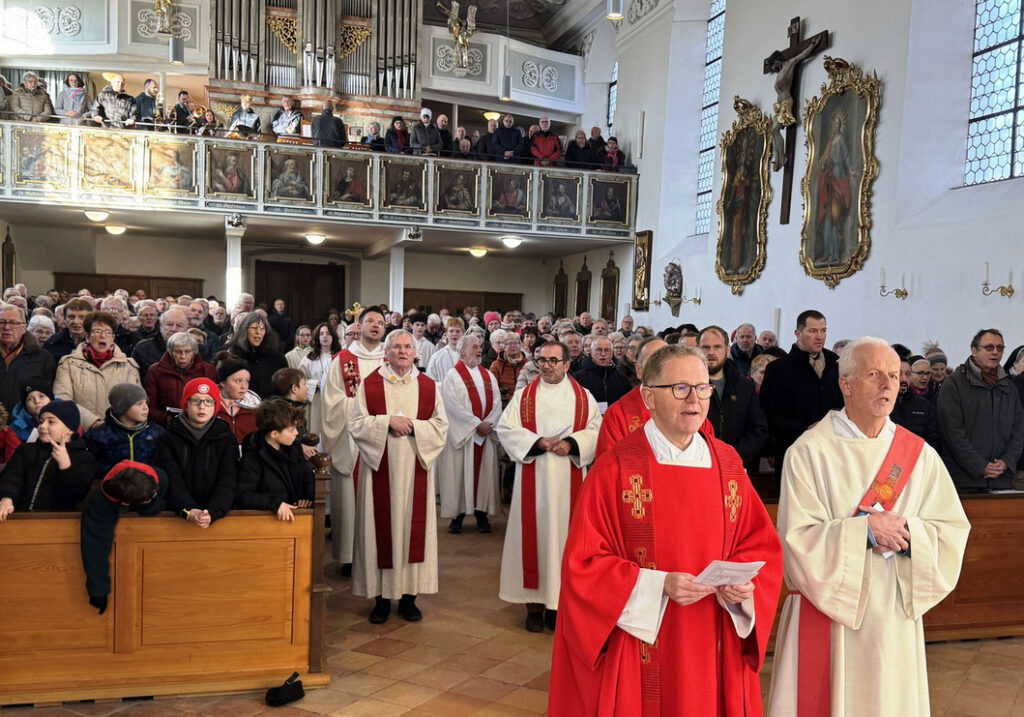 Die besondere Bedeutung dieses Gedenktags erkannte man auch daran, dass sich acht Priester und Diakone um den Altar versammelt hatten. Es waren dies von der Seelsorgeeinheit Bad Waldsee Pfarrer Thomas Bucher, Pfarrer Stefan Werner und Pater Hubert Vogel, von der Seelsorgeeinheit Bussen Pfarrer Alfred Tönnis, von der Seelsorgeeinheit Weißenau Pfarrer Fabian Ploneczk und Diakon-Ausbilder Erik Thouet, dazu Superior Ulrich Steck vom Kloster Reute, Superior Konrad Werder von den Salvatorianern Bad Wurzach; der 90-jährige Dekan i. R. Josef Mattes hatte Platz genommen im Altarraum. Hauptzelebrant war Pfarrer Thomas Bucher.