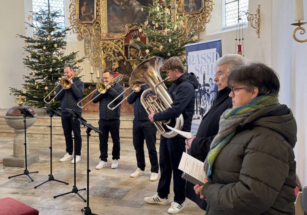 An der Orgel begleitete Hermann Hecht meisterlich all die passend ausgewählten Liedbeiträge für den Gottesdienst. Mächtigen Applaus gab es zudem für das Bläserensemble „Brassd scho“ unter Leitung von Manuel Zieher (Biberach). Die vier Blechbläser verstanden es, zuerst im Altarraum und dann auf der Empore, diesen besonderen Festtag klangvoll mit musikalischem Hochglanz zu bereichern.